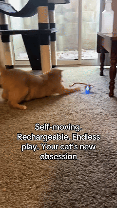 This toy is designed with three modes: Fast (Blue light), Slow (Purple light), and Interactive (Yellow light). It automatically enters standby mode after 5 minutes of inactivity, and your cat can reactivate it by a simple touch.
