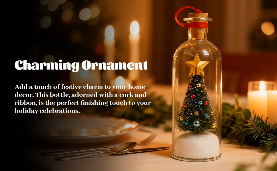✨Charming Decor Piece: The beautifully decorated bottle brush Christmas tree inside the glass bottle adds a touch of holiday charm to your home decor. With its cork and ribbon accents, it makes a delightful centerpiece for your festive celebrations