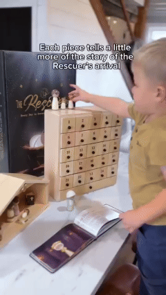 The set comes with a companion book with little vignettes about each character, describing their role in the greatest story of all time. Read along as the book guides you to dig deeper into who the Rescuer is. Each day of December has a small reading and scripture for reference.